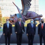 O monumento, que é um alebrije (uma escultura de arte folclórica e um guia espiritual), foi instalado na praça das Nações Unidas no início de novembro e tornou-se o símbolo guardião da paz e segurança internacional para os anos de 2021 e 2022 no Conselho de Segurança da ONU. Confira as fotos: